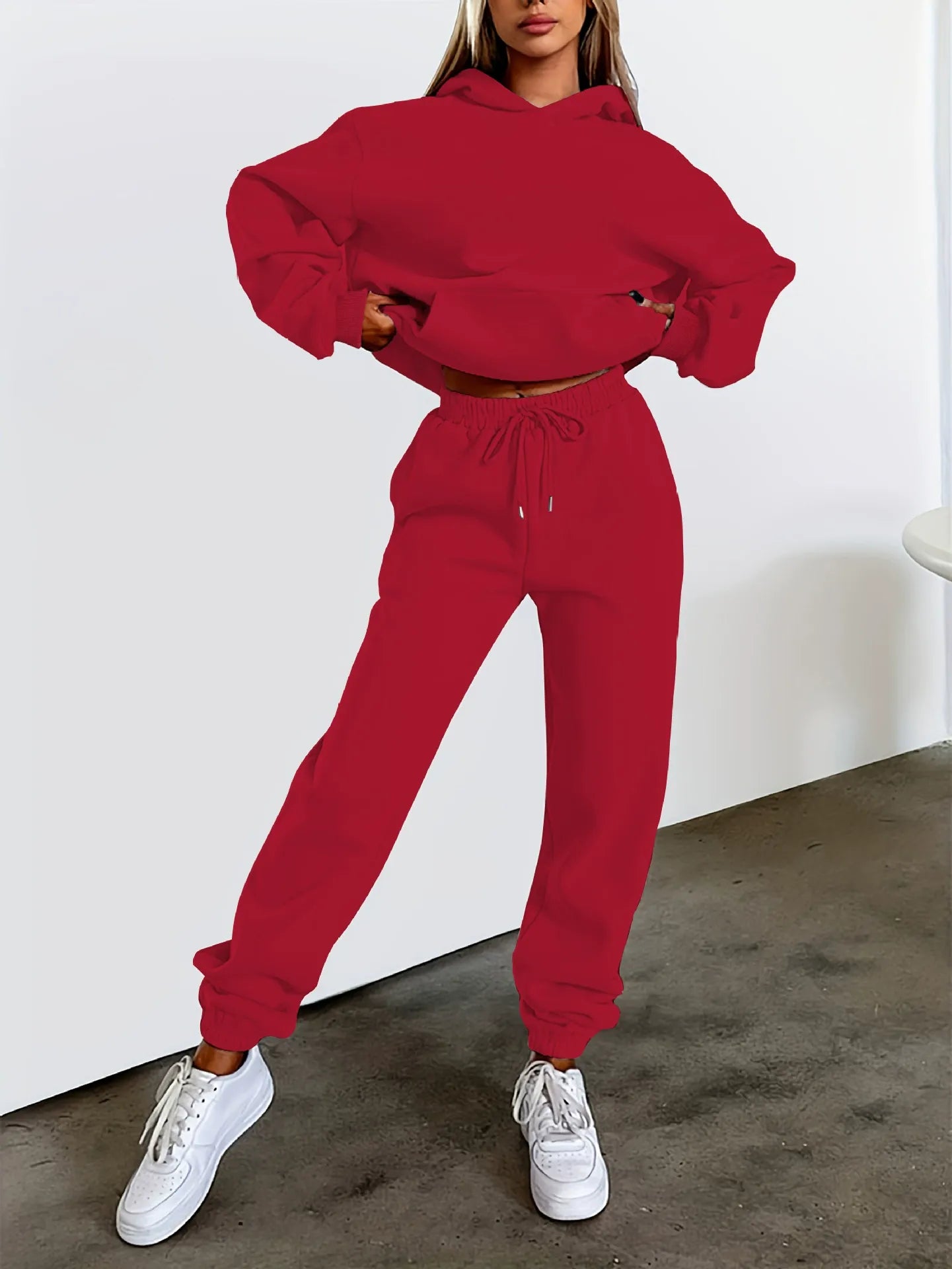 • Coordinated Two-Piece Set: Includes a matching hoodie and joggers so you can create a polished women's tracksuit outfit in seconds, ideal for athleisure, casual streetwear, and winter loungewear.