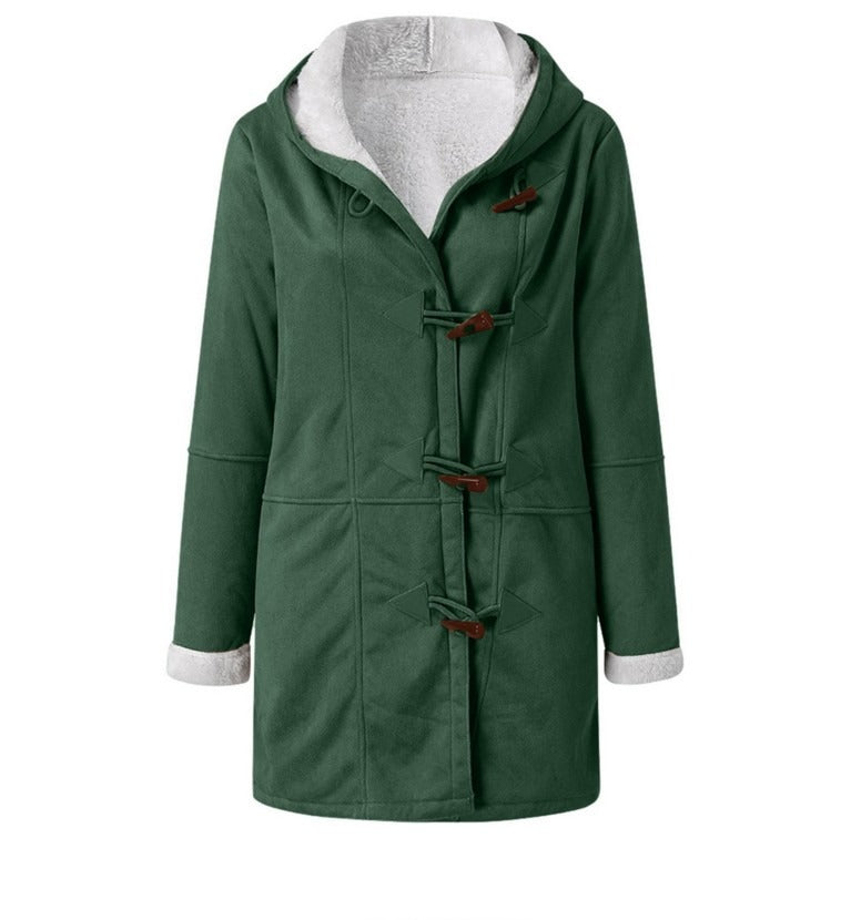 This long hooded winter coat for women pairs a refined silhouette with everyday practicality to keep you warm throughout autumn and winter. The relaxed cut allows easy layering over knitwear while maintaining a streamlined, flattering profile. Thoughtful details and a neat fleece inside finish make it ideal for commuting, errands, and smarter weekend plans as a versatile women's winter coat.