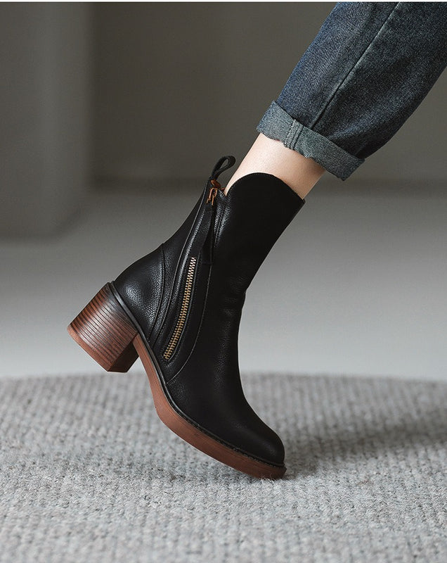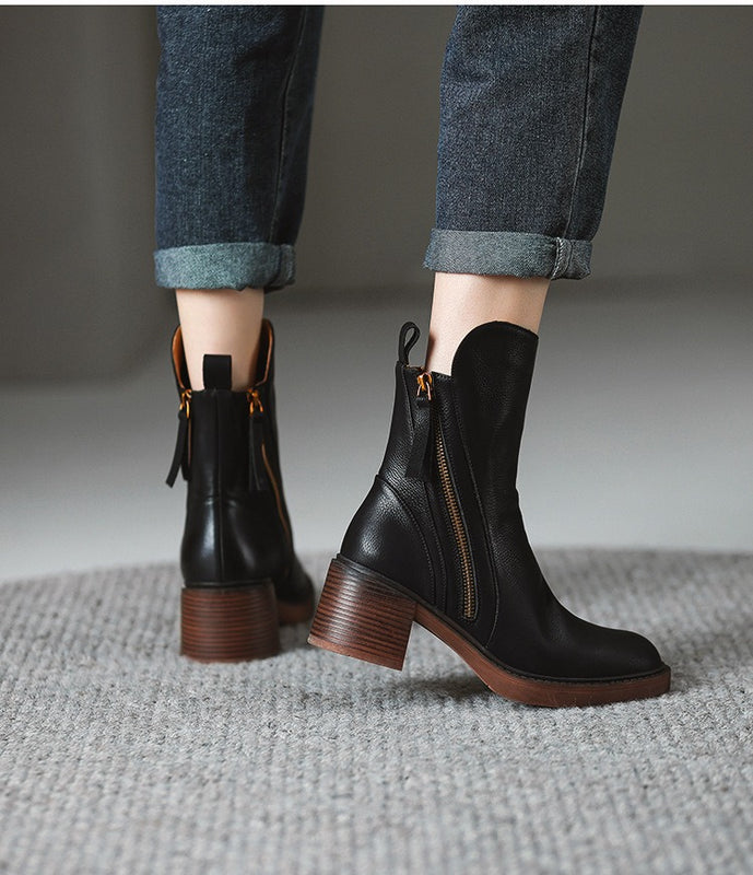 These ankle boots for women pair a rounded toe with a stacked block heel to give flattering height while keeping steps steady for everyday wear. Side zippers make slipping them on quick and effortless, saving time during busy mornings and commutes. A cushioned insole and high-traction outsole provide comfortable support and reliable grip through fall and winter for office days, travel, and casual evenings out.