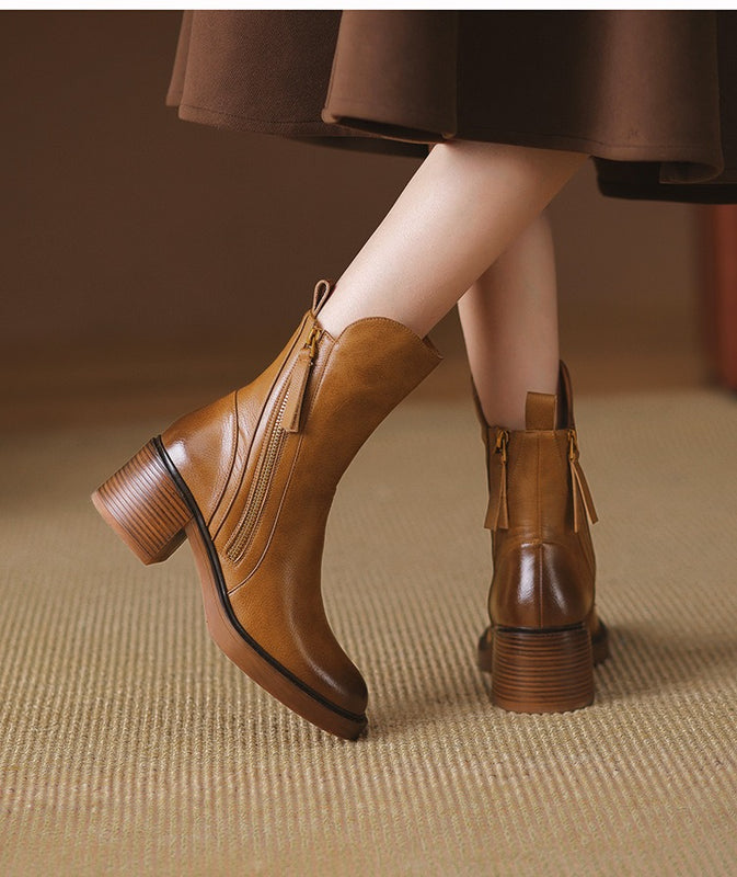 Stylish Rounded Toe Block Heel Ankle Boots for Women